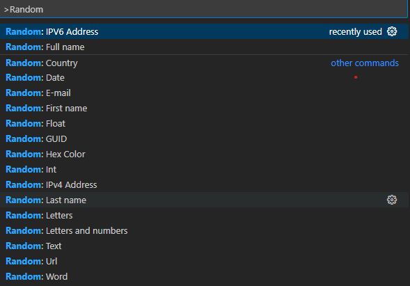 Extension for Visual Studio Code - Generate random ints, floats, strings, words, etc.