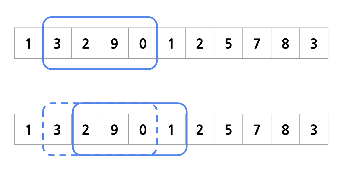 Sliding window | 슬라이딩 윈도우 알고리즘 1. 슬라이딩 윈도우 알고리즘이란? 윈도우(특정범위)가 있을때 배열이나 내부 요소의 값을 윈도우로 이동하며 해결하는 알고리즘이다 1. 위의 파란색 범위를 윈도우라고 한다. 2. 윈도우를 이동을 하며 배열을 탐색한다. 2. 배열에서 연속하는 요소들을 연산하려고 할때 쉽게 중첩된 for loop를 이용해서 구하기 쉬운데 O(n^2)을 가지게 되어 효율성에서 많이 문제가 생긴다. 3. 이럴때 슬라이딩 윈도우 알고리즘을 이용한다 배열이나 문자열같은 선형구조에서 일정범위값이 있을때 // 예 ) 배열이 있을때 배열에서 연속하는 5개 요소의 합중 최대값을 리턴한다. // [1, 3, 2, 9, 0, 1, 2, 5, 7, 8, 3] 연속하는 5개의 요소를 이동하며 합을 구하게 된다. [1, 3, 2, 9, 0, 1, .. 알고리즘/알고리즘 2023.02.08